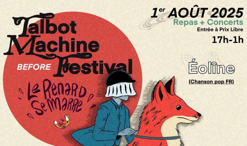 Afin de soutenir les initiatives sur le territoire, nous invitons l’association Origami, organisatrice du « Talbot Machine Festival » pour réaliser une soirée d’ouverture au Renard se Marre. Durant cette soirée, l’association organise des concerts et invite des professionnels de la coiffure et du tatouage afin de mélanger différentes initiatives artistiques du territoire.